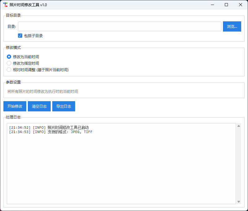 一个用Python开发的照片拍摄时间批量修改工具,支持修改照片的EXIF元数据和文件系统时间戳。